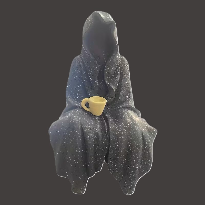 Celestial Texture: The figure’s hooded robe is finished in a dark navy-to-black matte texture heavily infused with fine white speckles. This “galaxy effect” gives the statue a shimmering, otherworldly appearance that catches the light from every angle.