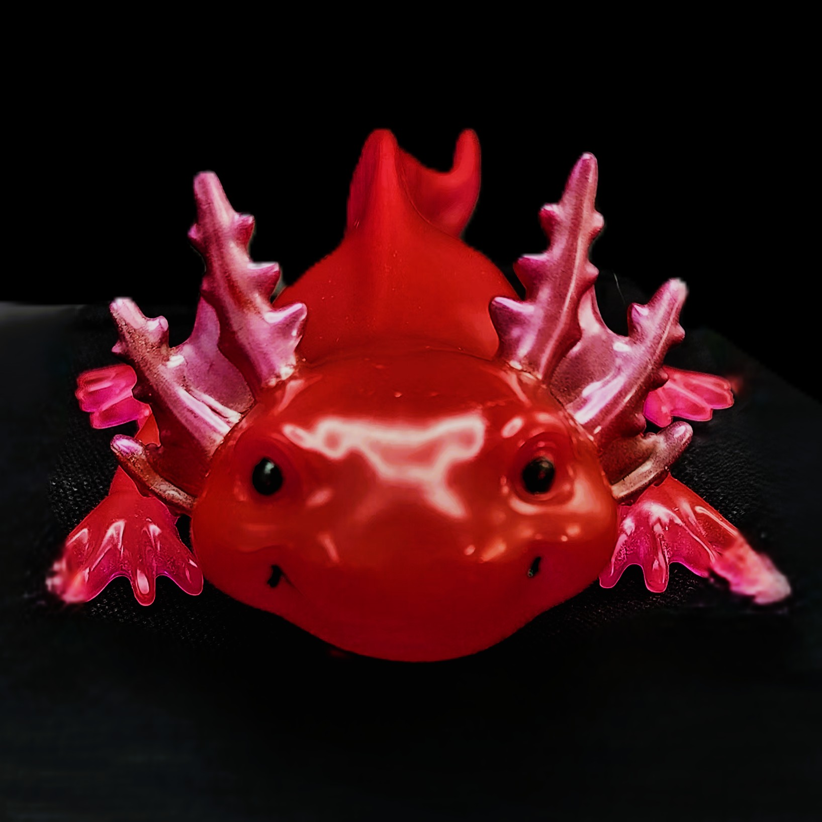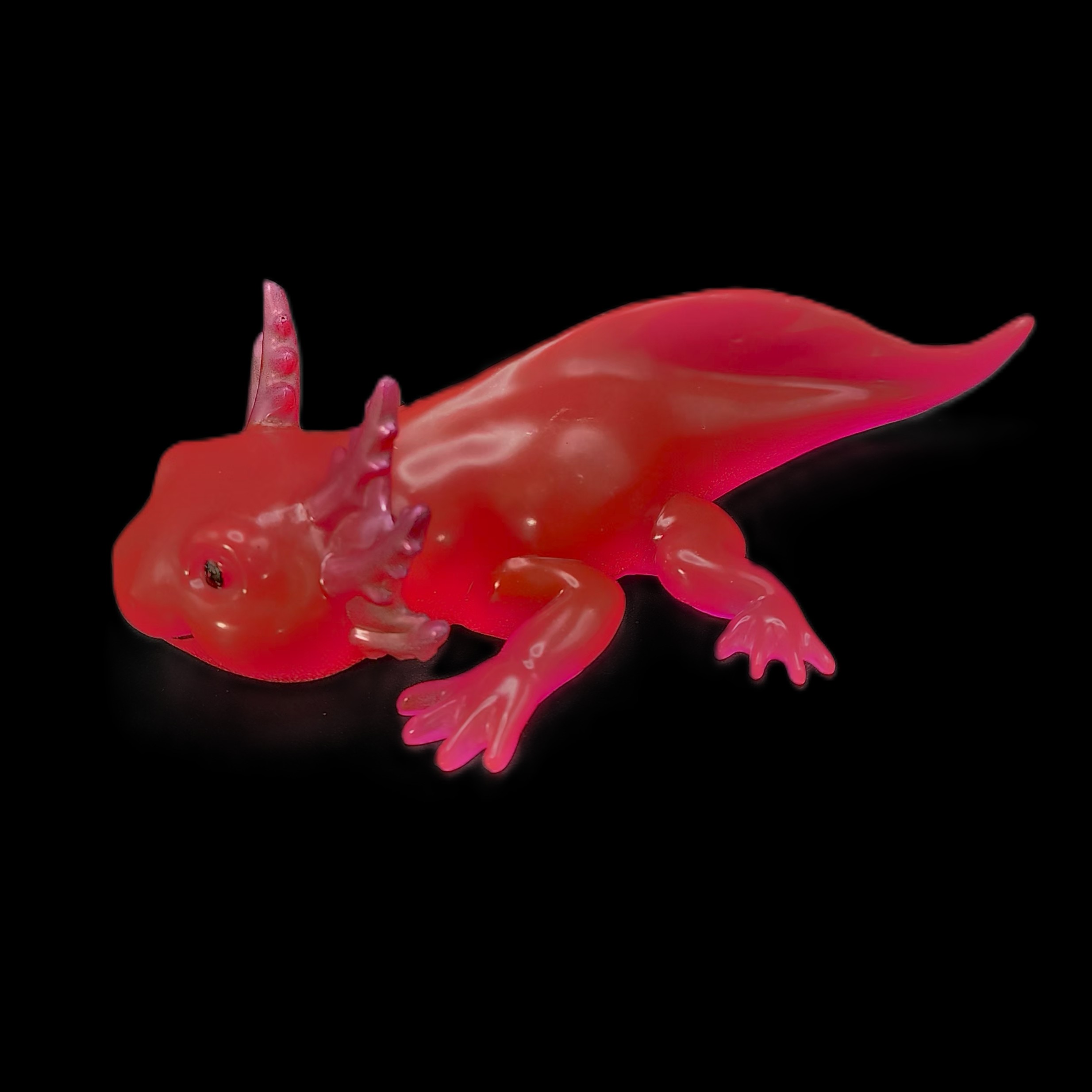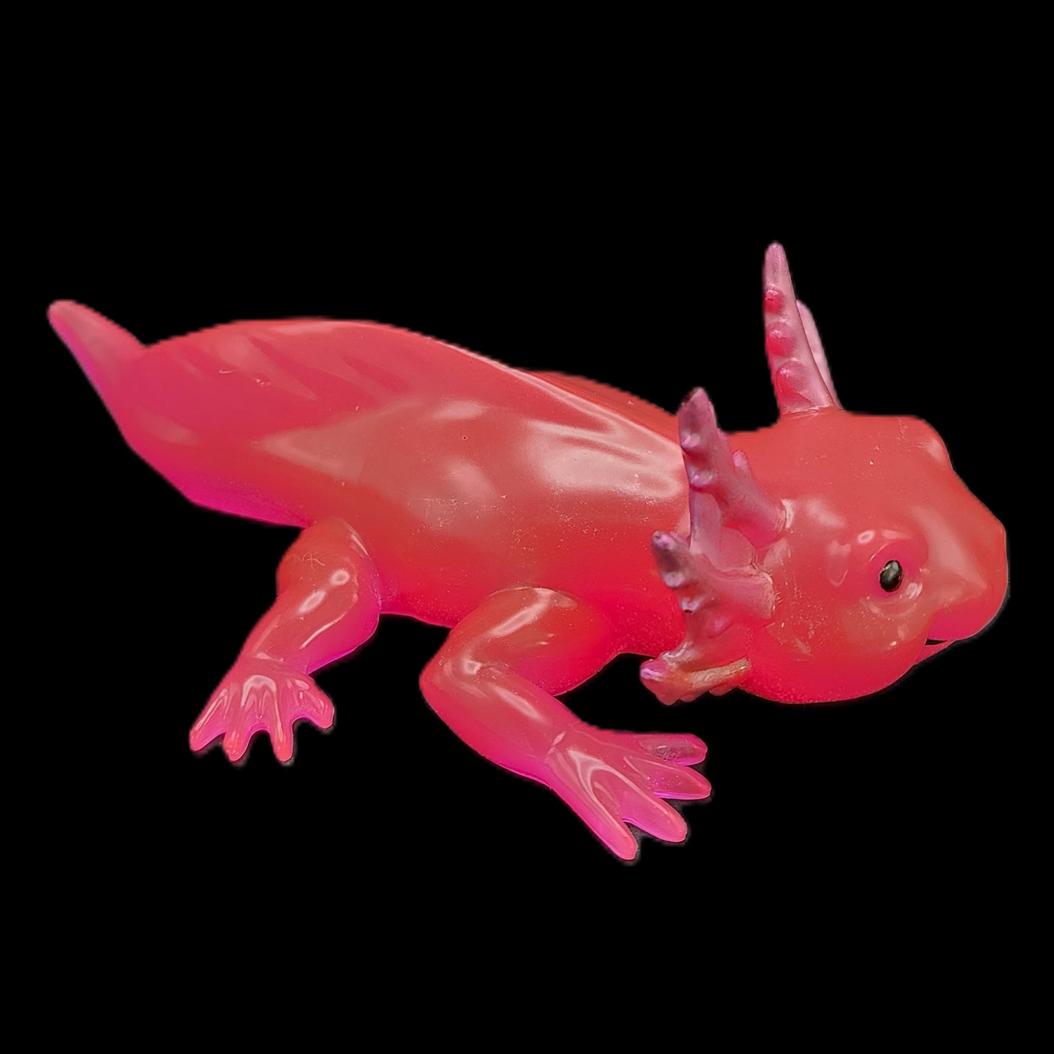 A deep‑pink axolotl that glows in the dark. Adorable, magical, and full of charm.