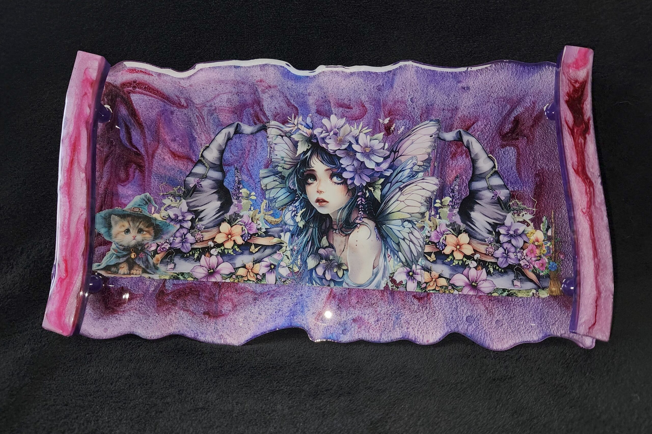 This purple resin cast tray is a whimsical, handcrafted piece designed to evoke the enchantment of a fairy vestige, perfect for adding a touch of nature-inspired magic to any space. It serves as both a functional item for organizing small treasures and a charming decorative accent.
