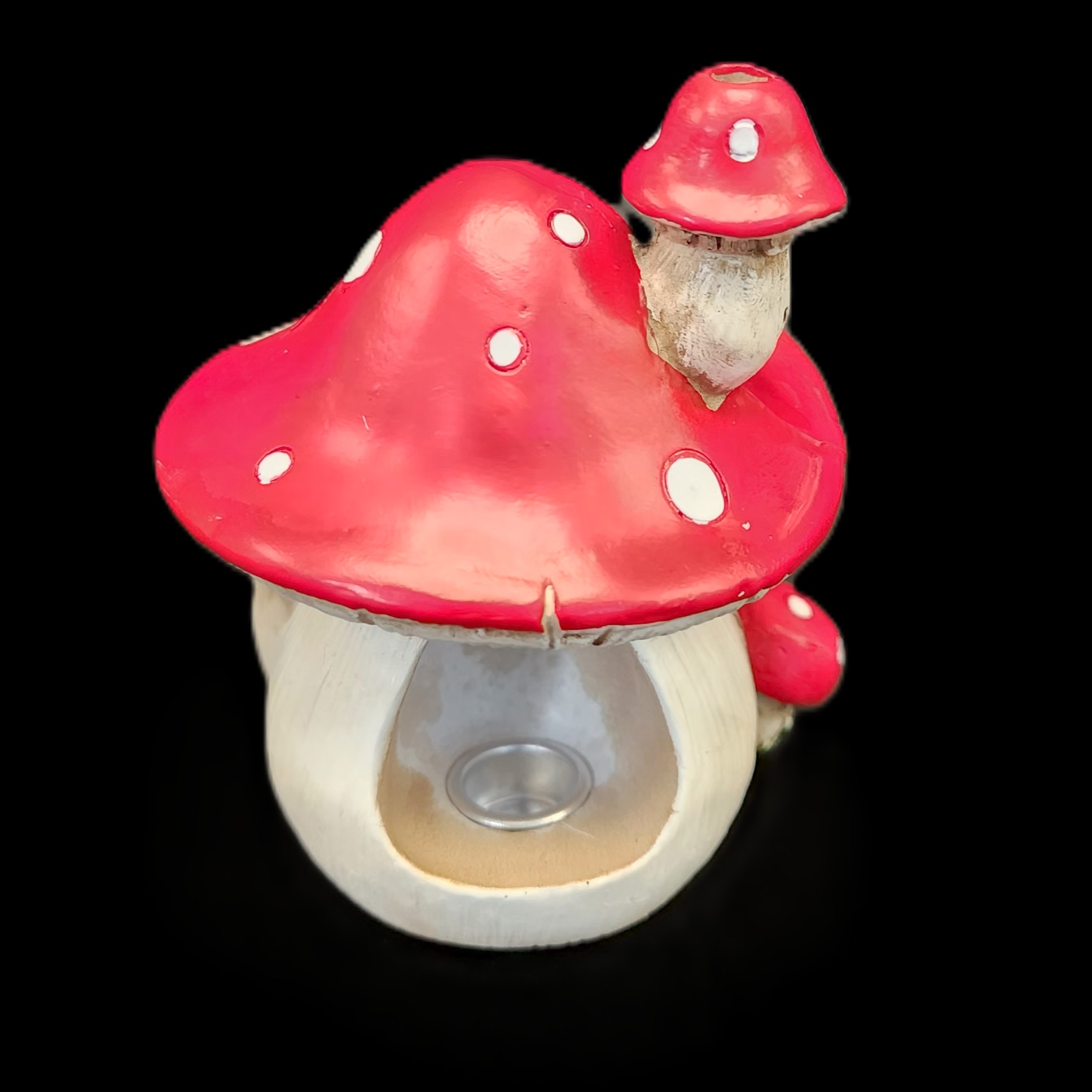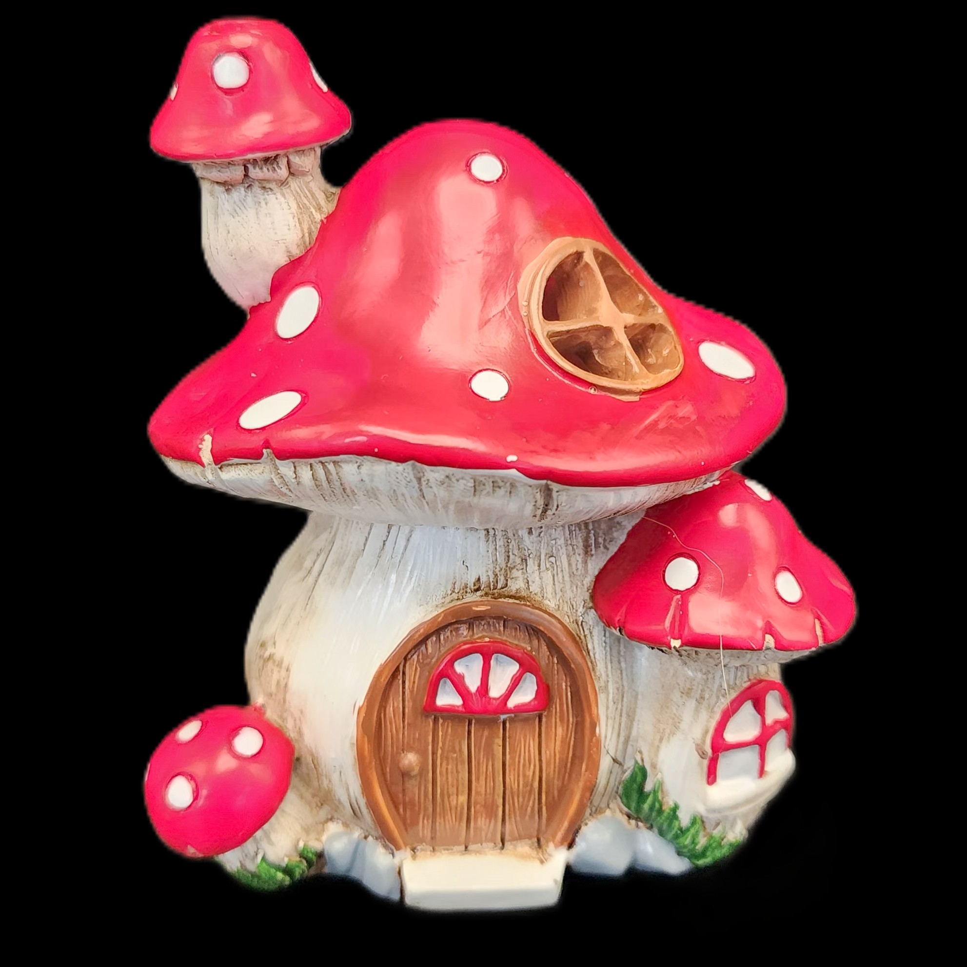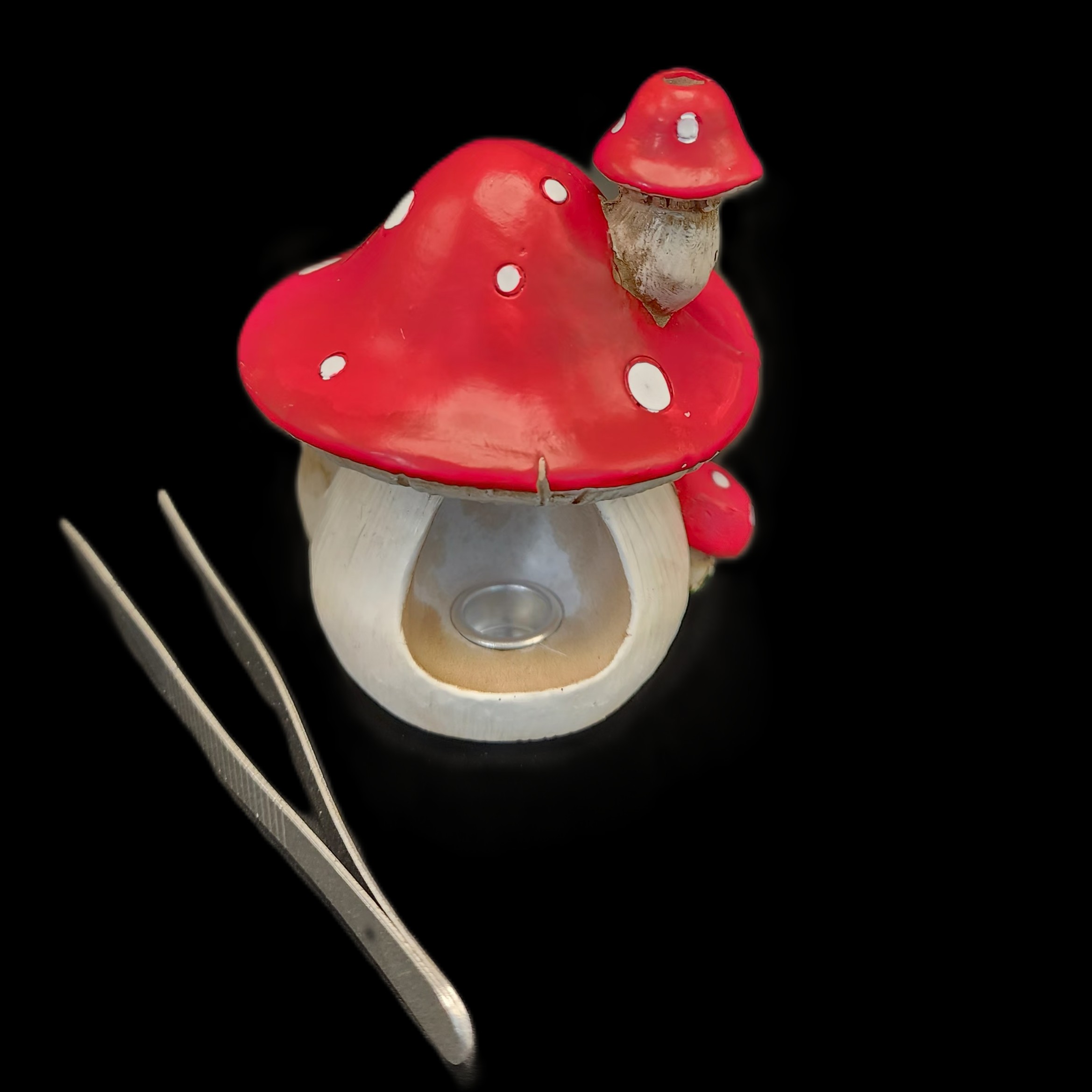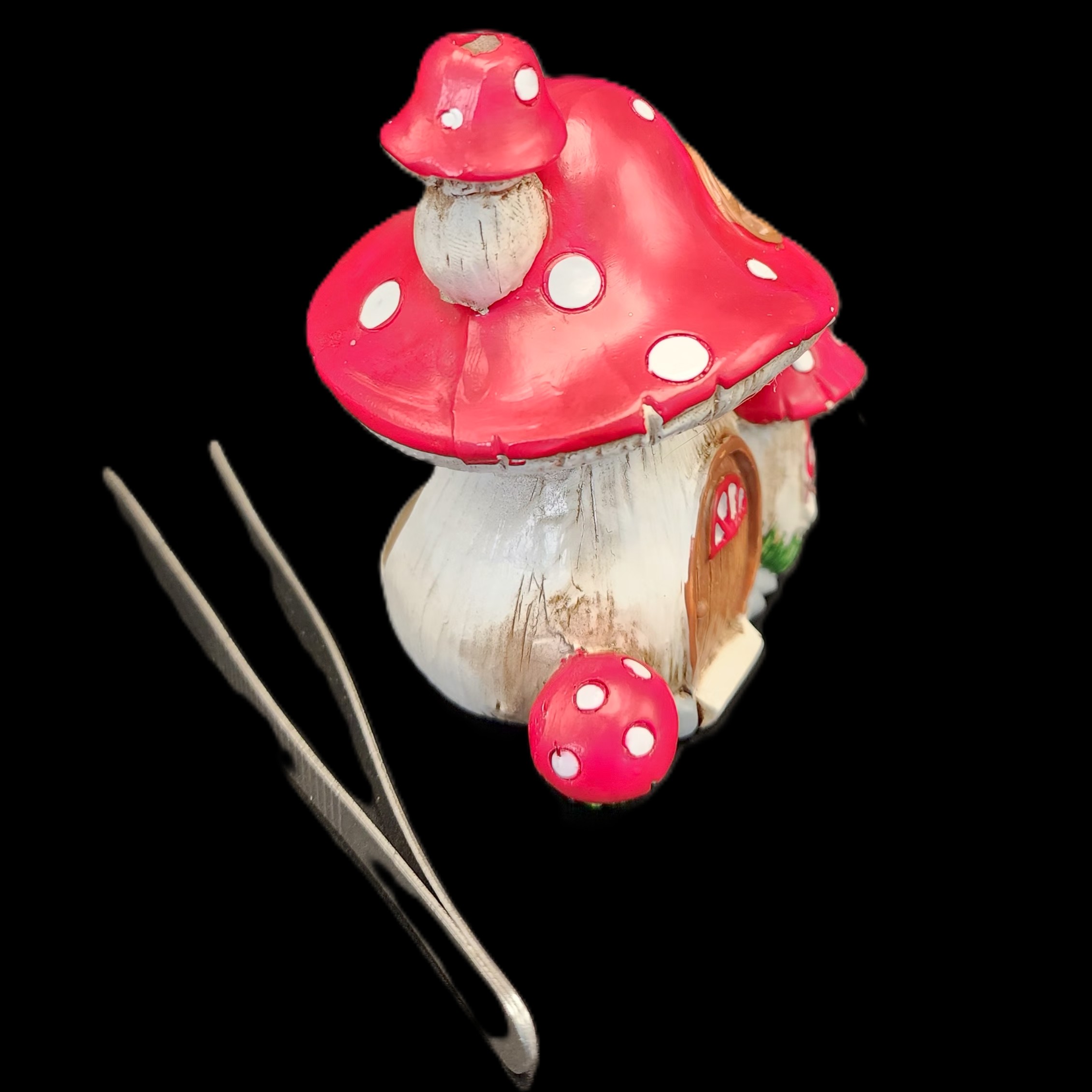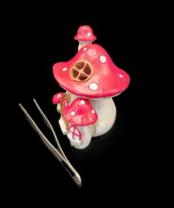 This charming mushroom‑house incense burner looks like it wandered straight out of a fairy‑tale forest. Light your incense and watch as gentle smoke curls from the tiny chimney, bringing the little cottage to life. With its bright red cap roof, tiny windows, and playful details, it’s a sweet, magical accent for anyone who loves a touch of enchantment in their space.