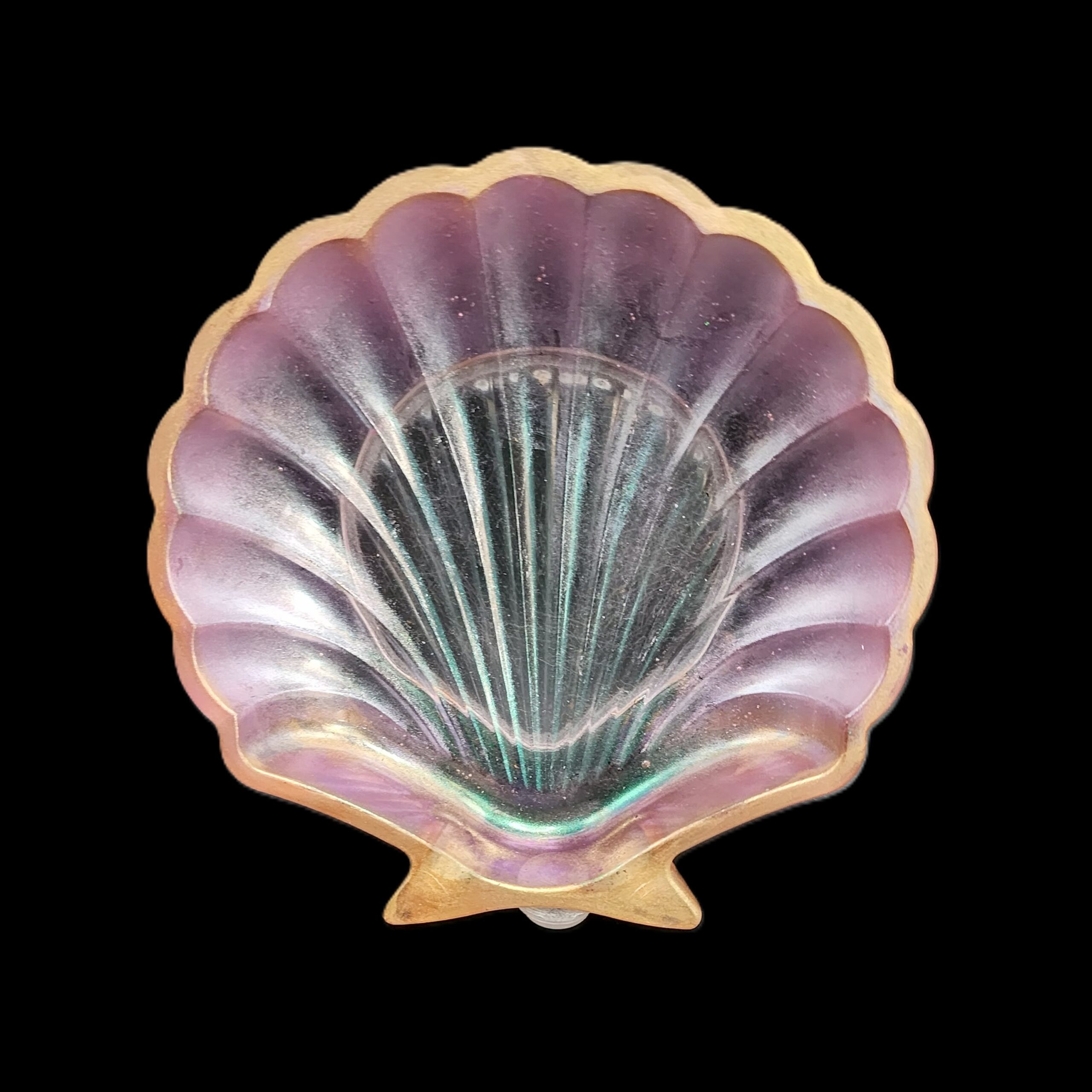 This handmade scallop‑shell soap dish turns a simple bathroom essential into a little piece of ocean‑inspired art. The iridescent purple interior catches the light like a real seashell pulled from a tide pool, while the gold edging adds a touch of warm, beachy elegance. Perfect for holding soap, jewelry, keys, crystals, or any small treasures, it brings a splash of color and coastal magic to sinks, vanities, and nightstands. Functional, durable, and beautifully crafted — a small piece with big charm.