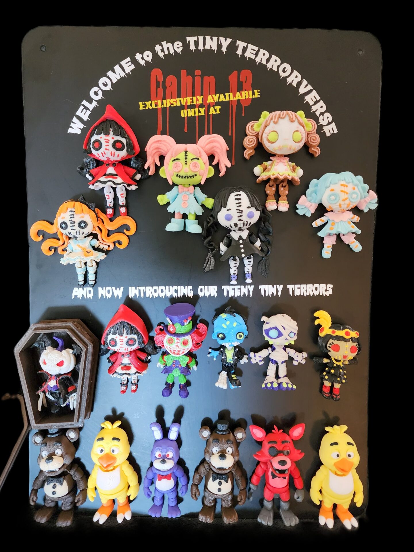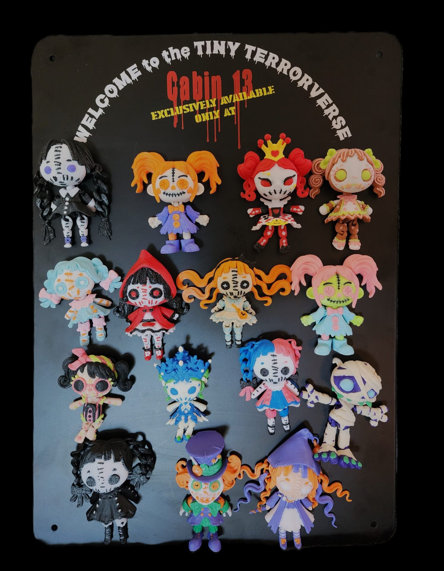 Each Tiny Terror is 3D printed with crisp detail, hand‑finished with wicked charm, and infused with enough personality to judge your snack choices. No two are alike — every creature has its own quirks, colors, and carved expressions, making them irresistible to collectors, horror lovers, and anyone who prefers their décor with a side of delightful dread.